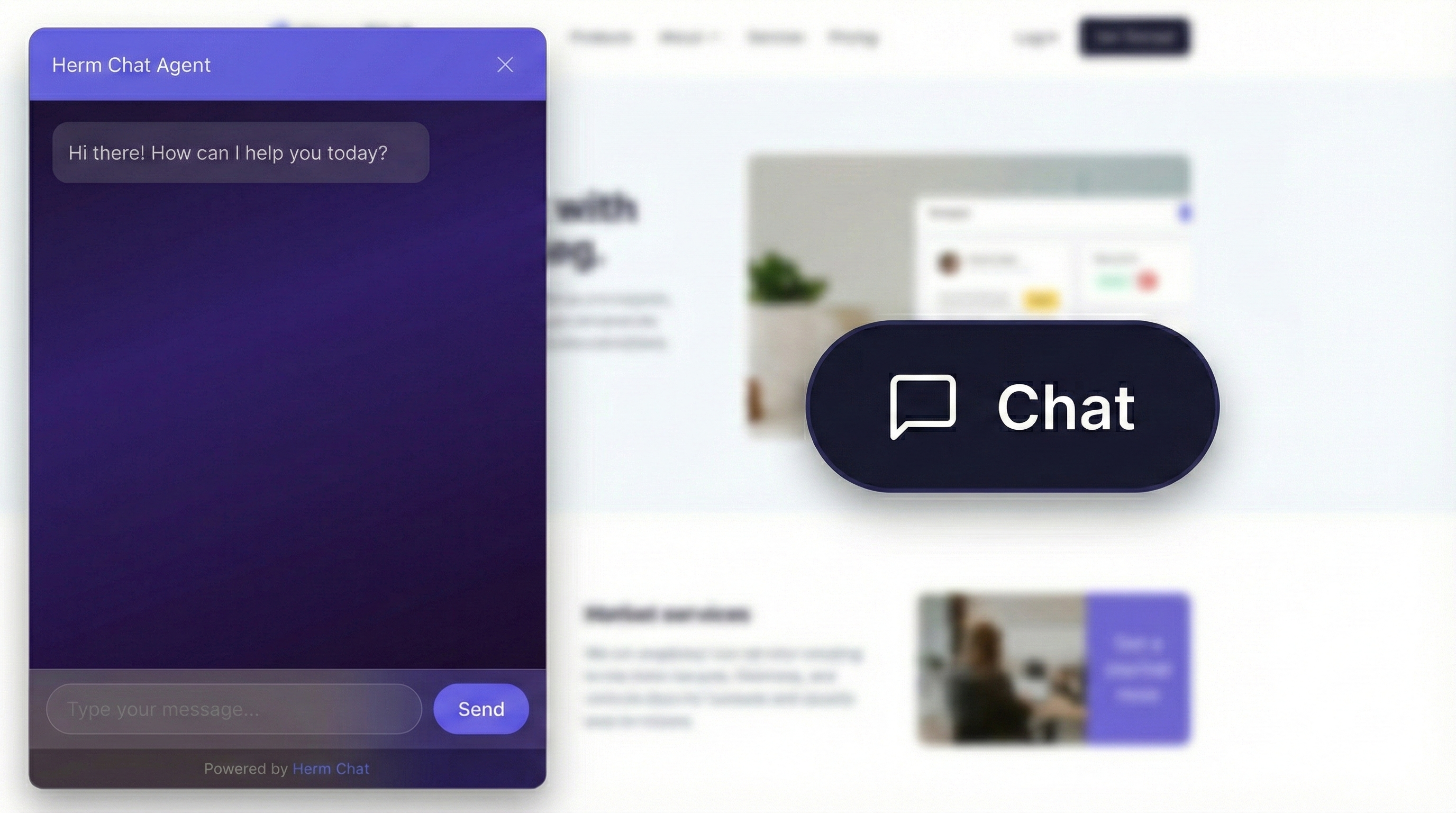 The moment the snippet is live, Herm.Chat becomes part of your website.
